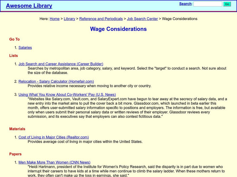 This resource page links to articles and calculators for understanding the minimum wage and other salary considerations in economy that affect how much people are paid.