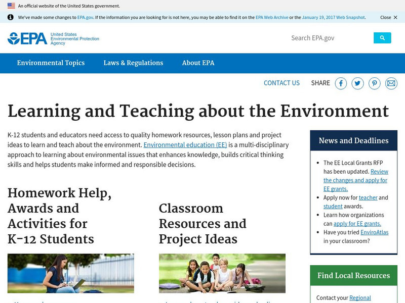 The United States Environmental Protection Agency provides activities, tips, and lessons for students of all ages regarding the environment.