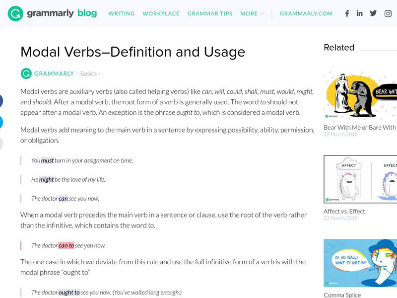A helping and modal auxiliary verb site from the Capital Community College. Use this site as a reference tool when learning about modal auxiliary verbs.