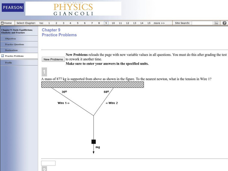 From the Prentice Hall companion web site for the Giancoli Physics textbook. A series of interactive questions on the topic of elasticity and fracture. Questions 11 through 19 pertain to the stress-strain relationship for elastic...