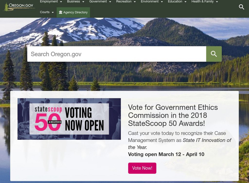 Official site from the State of Oregon provides information on state government, resources, economics, business, agencies, education, and general Oregon information.