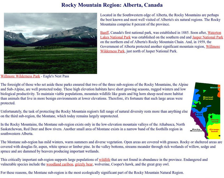 Pictures and descriptions of Rocky Mountains and wildlife in Alberta, Canada.