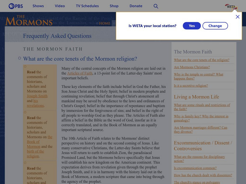 Pbs: Faq Sheet on the Mormon Church's Growth, Structure and Reach