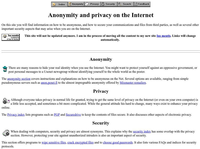 A site that gives information on how to be anonymous and how to secure communications and files on the internet.