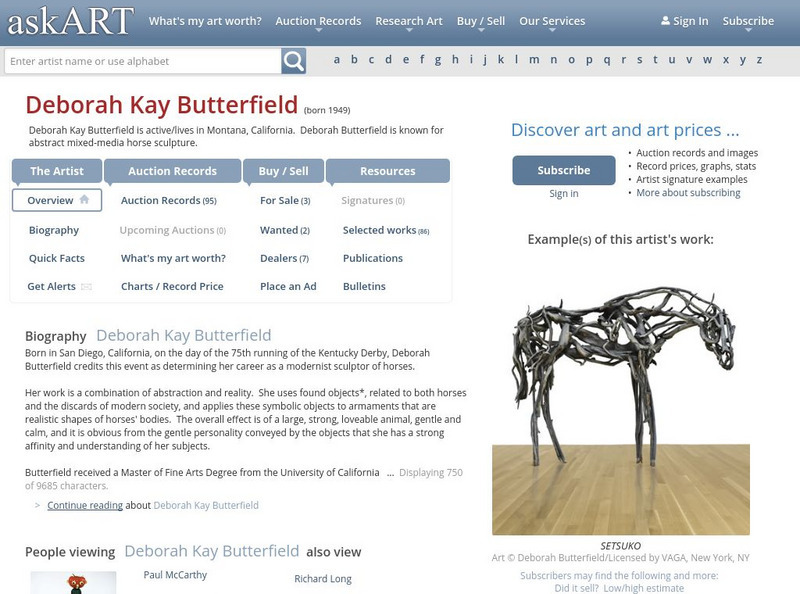 This site from Ask Art.com provides links to different topics surrounding artist, Deborah Butterfield.