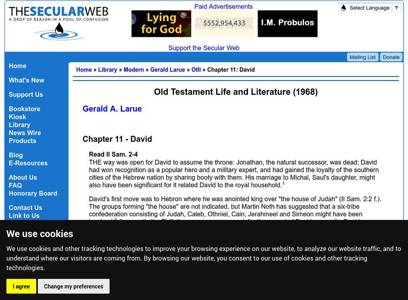 This is an excellent scholarly work on the story of King David. It includes perspectives on his life, theological significance and related issues.