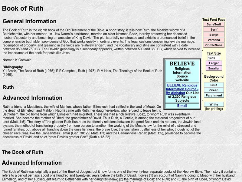 A helpful introduction to the book of Ruth that highlights the main theme in the book. Also has a section on "Advanced Information" about the book that includes more detailed information from a Catholic and a Jewish perspective.