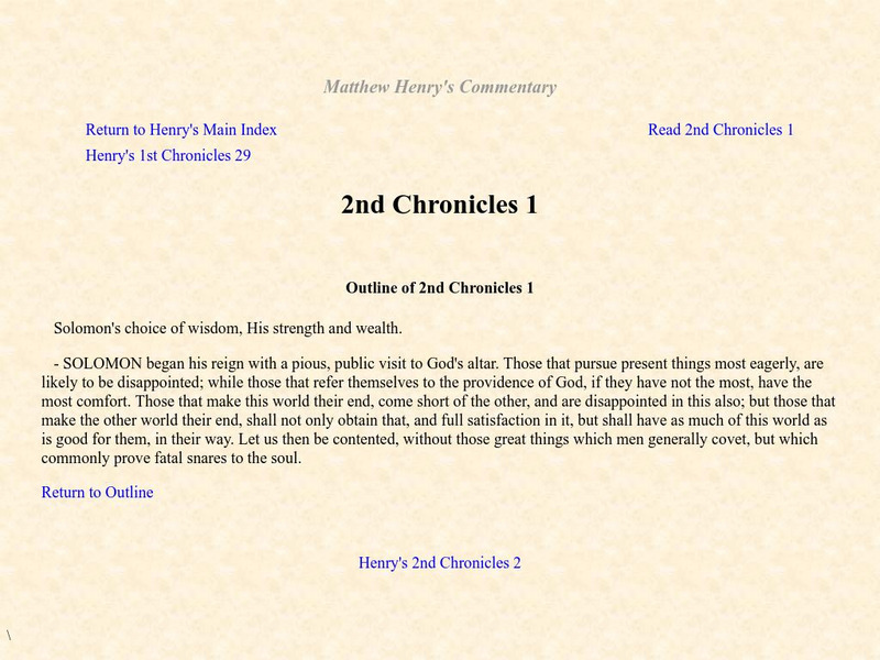 An overview of the entire book of 2 Chronicles and then a chapter by chapter summary given by Matthew Henry.