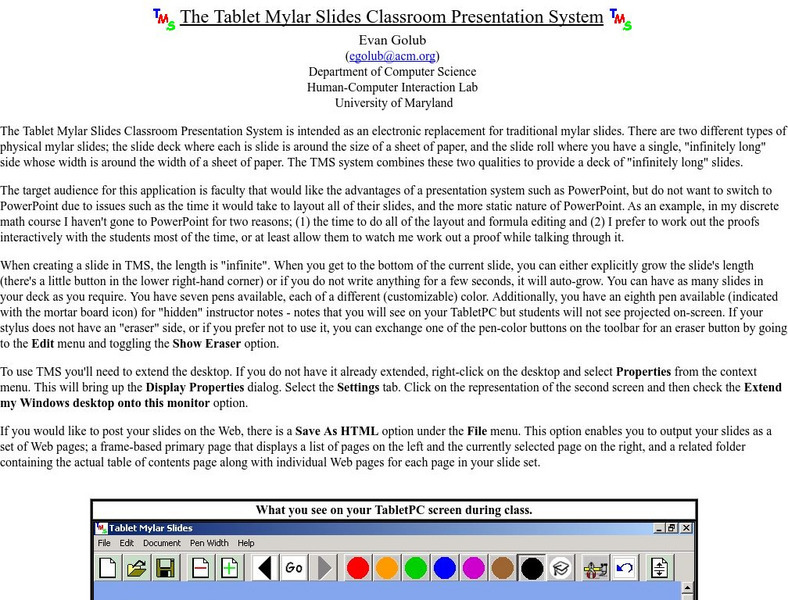 This free, downloadable software is made for use with tablet PCs and offers a flexible alternative to using PowerPoint or its equivalent. The examples shown are in mathematics, but the application can be used for any subject area.
