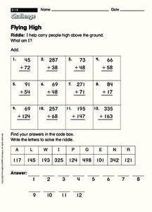 In this addition practice worksheet, students solve 12 problems that require them to add using 2 and 3-digit numbers. Students use their answer to reveal a mystery word.