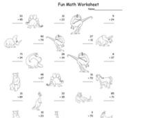 In this addition practice instructional activity, learners solve 15 problems that require them to add 1 or 2-digit numbers to 2-digit numbers.