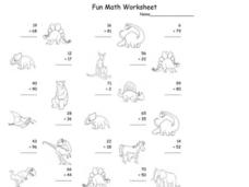 In this addition practice activity, students solve 40 problems that require them to add 3-digit numbers to 1 or 2-digit numbers.