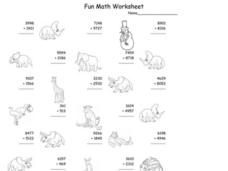 In this addition practice learning exercise, students solve 15 problems that require them to add 3 or 4-digit numbers to 4-digit numbers.