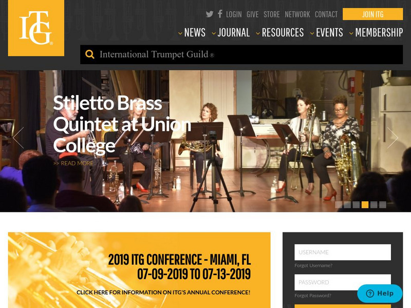 Visit this website for resources, articles, and news related to trumpet playing. Read about the latest events in "News from the Trumpet World" and check out the ITG Youth Website.