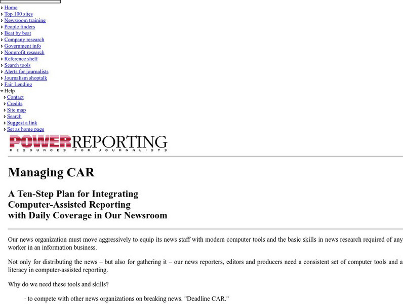 Power Reporting: Computer Assisted Reporting in the Newsroom