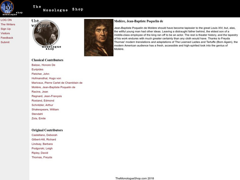 Short article on Moliere with a color illustration. Links to a page about Freyda Thomas, a modern translator of Moliere's works.