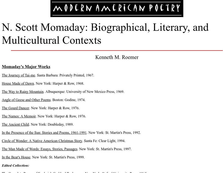 University of Illinois: Momaday: Biographical, Literary, & Multicultultural