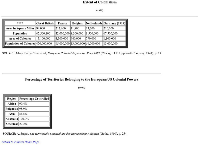 A chart of statistics concerning European colonialism towards the end of the imperialist era.