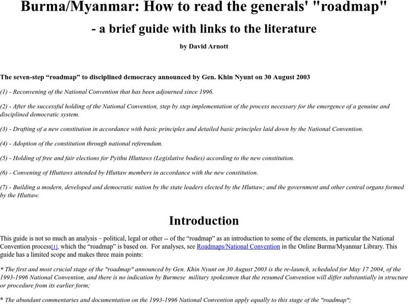 Ibiblio: Burma Myanmar: How to Read the Generals' "Roadmap"