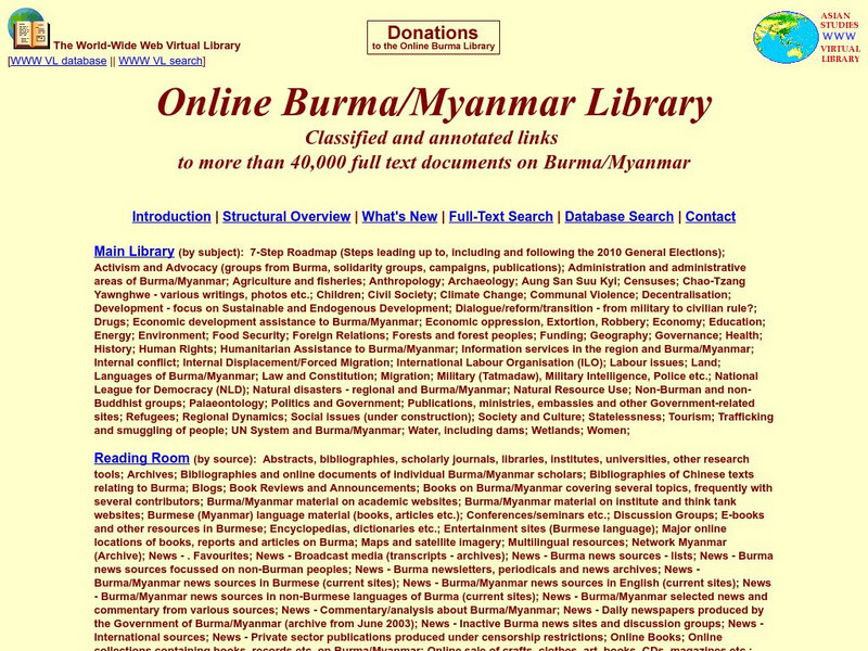 Classified and annotated links to more than 5000 full text documents on Burma (Myanmar).