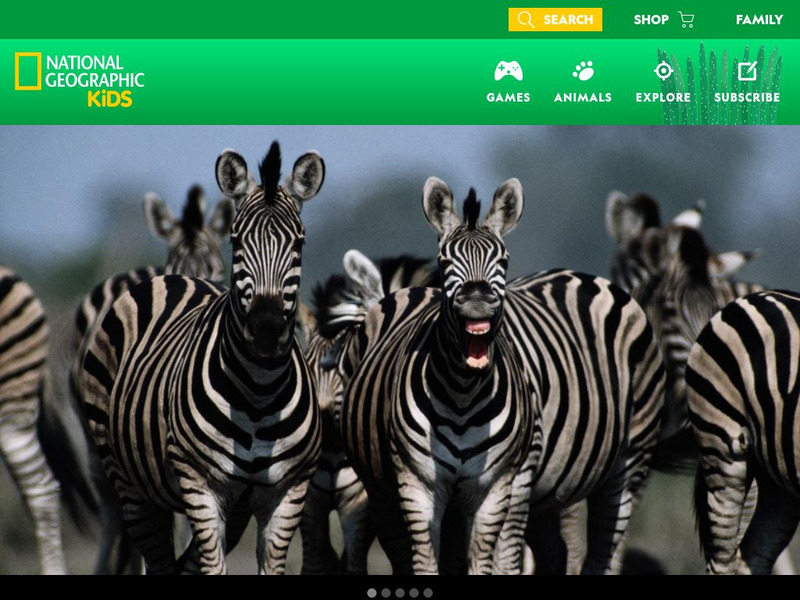 Click-through facts-and-photo file about zebra characteristics, diet, and habitat. Includes a map of Africa that pinpoints its range and a video that shows zebras in action.