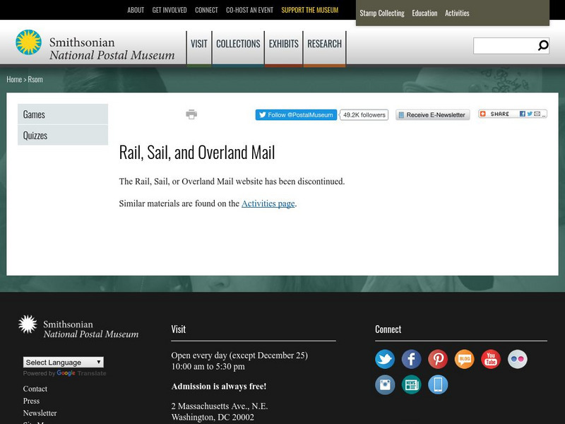 Audio and animated visual presentation on the history of how mail travels, starting in the 1850s. This activity lets you see how quickly you can carry twenty bags of mail from Philadelphia to New Orleans using various methods of travel.