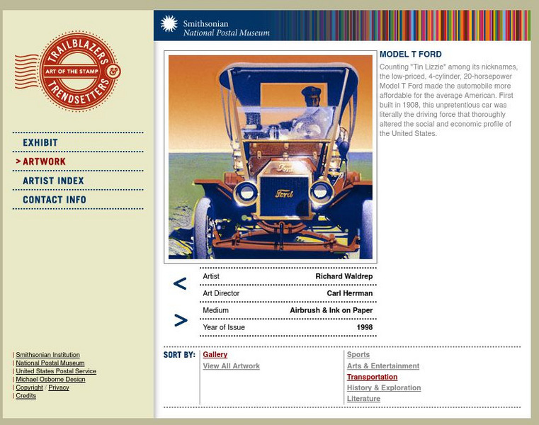 View the artwork for a U.S. postage stamp issued in 1998 to commemorate Henry Ford's Model T Ford, built in 1908.