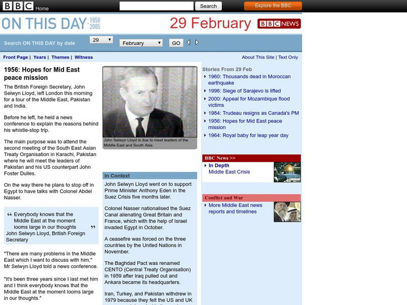 Bbc: 1956: Hopes for Mid East Peace Mission