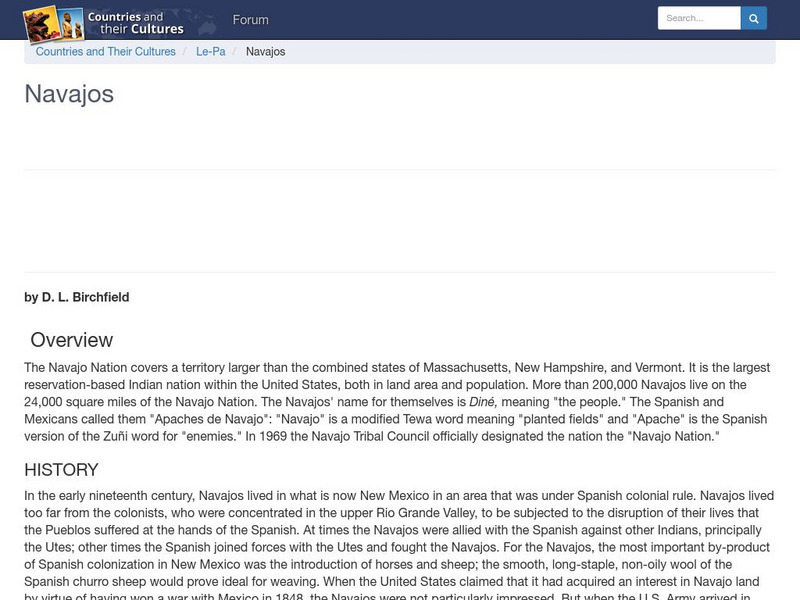 Learn about the culture of the Navajo tribe. Explore topics such as their history, cultural values, religion, and sociopolitical organization.