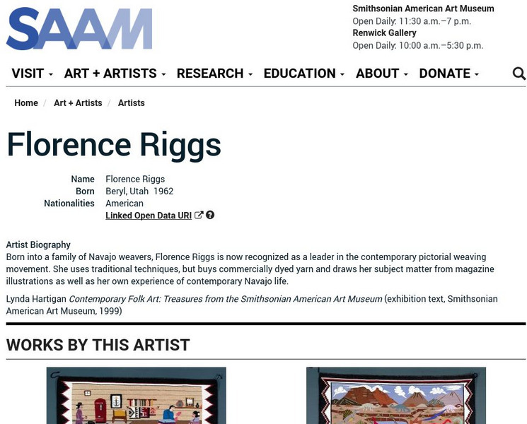 As part of the Smithsonian Art Museum's database of artists, Florence Riggs is described here along with information on his contributions to art through her weaving (Navajo).