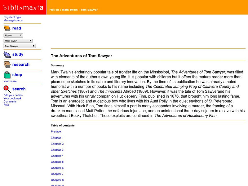 Bibliomania: "Adventures of Tom Sawyer" (Text)