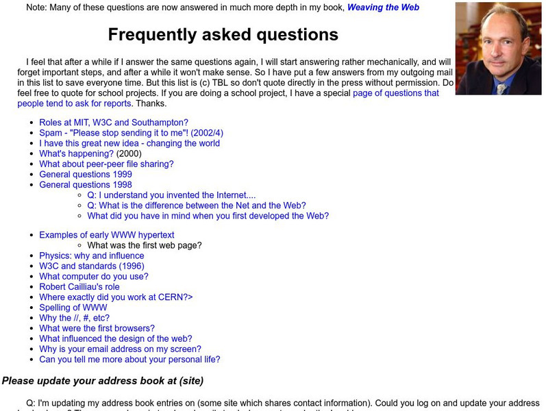 In this site the inventor of the World Wide Web answers frequently asked questions.