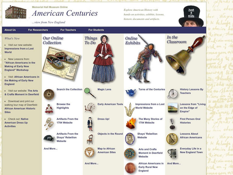 A multi-purpose site that provides information on history and historic artifacts from New England. There are also some interesting games that serve to enhance learning about New England. Be sure to watch video demonstrations of Early...