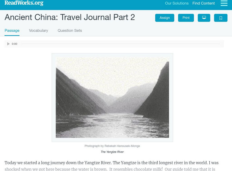 [Free Registration/Login Required] This passage includes a journal that recounts the author's travels along the Yangtze River in China. This passage is a stand-alone curricular piece that reinforces essential reading skills and...