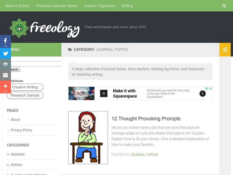 In this lesson, an interactive link included to help generate ideas for stories. A button is clicked and a topic is given. In a writer's notebook or journal, each student will use the topic given and develop it. [Requires Adobe Reader.]