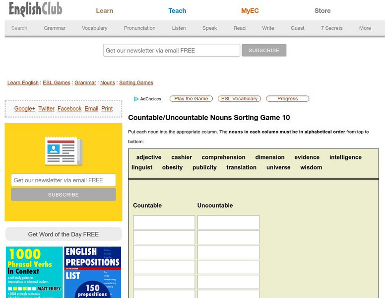 In this game, students sort the words into countable and uncountable noun categories and place them in the columns in alphabetical order from top to bottom.