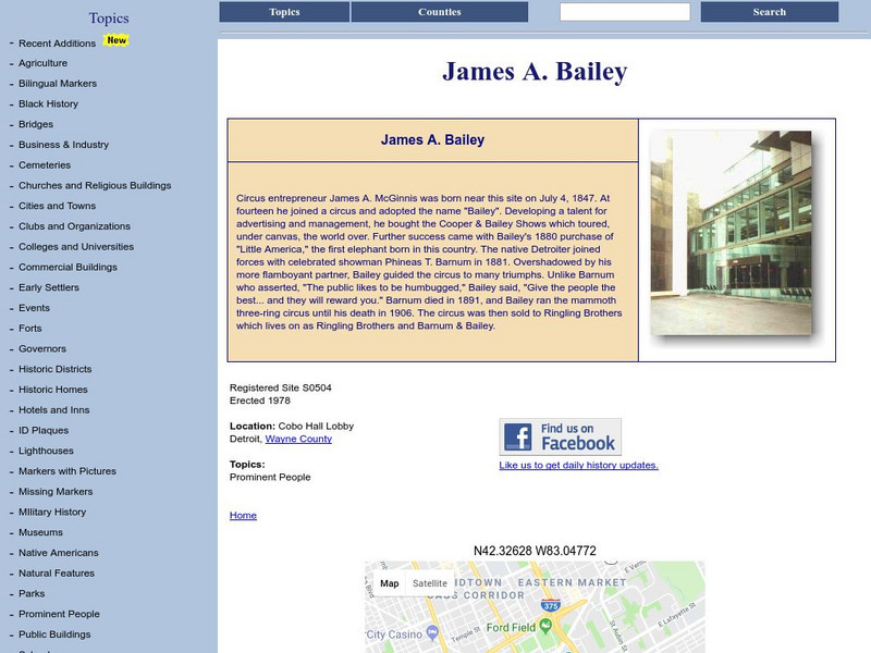 Brief biography of James Bailey is found at this site. Includes his career in the circus industry.