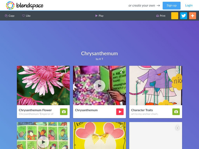 A seven-part learning module with links to images, videos, and a website to use while reading Kevin Henkes' Chrysanthemum.