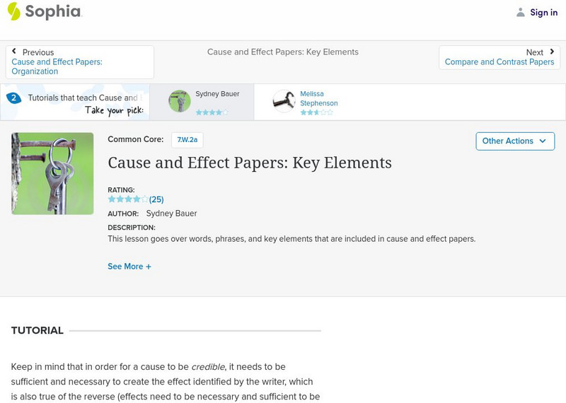 Sophia: Cause and Effect Papers: Key Elements: Lesson 2