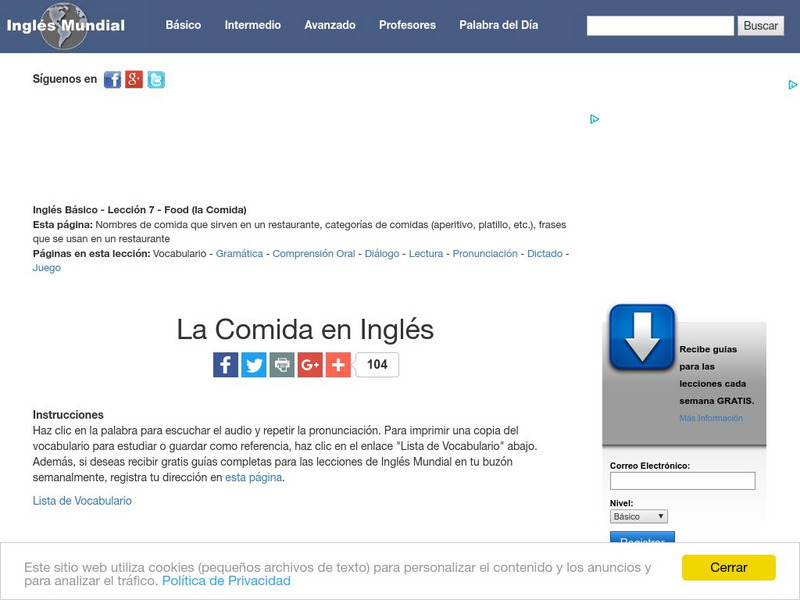 Great tool for teaching Spanish-speaking English Language Learners (ELL). This vocabulary lesson focuses on: Food vocabulary. A variety of interactive, self-correcting exercises are provided to reinforce material presented - audio...