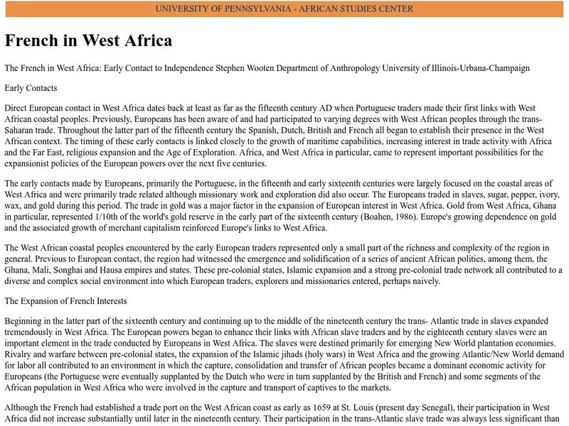 This site has historical information about West Africa and the French colonial presence in the 19th and 20th Centuries.