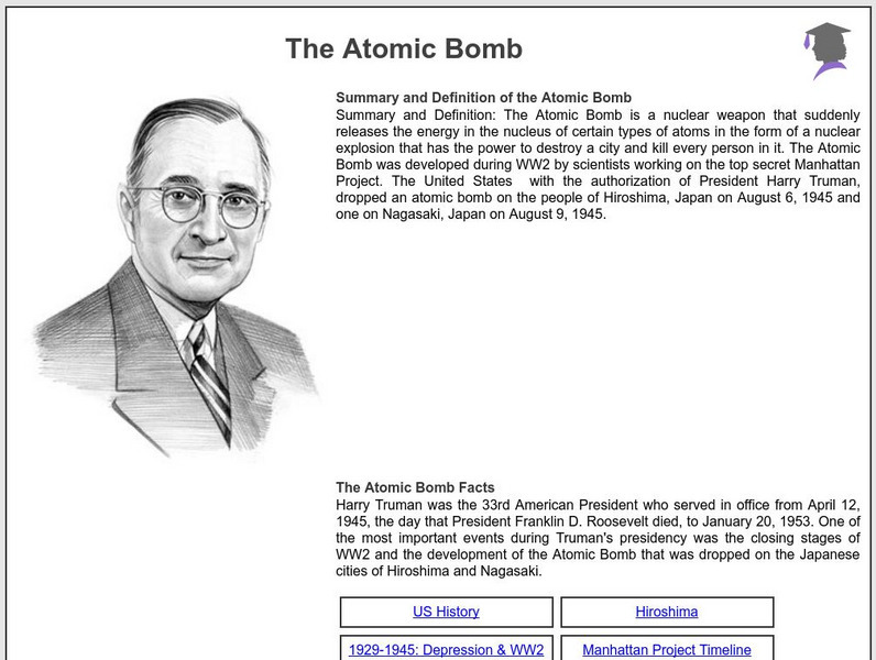 Provides interesting information, history, and facts on the Atomic Bomb and its use during WWII.