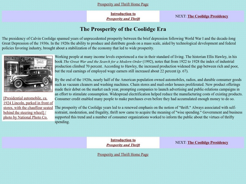Loc: American Memory: The Prosperity of the Coolidge Era