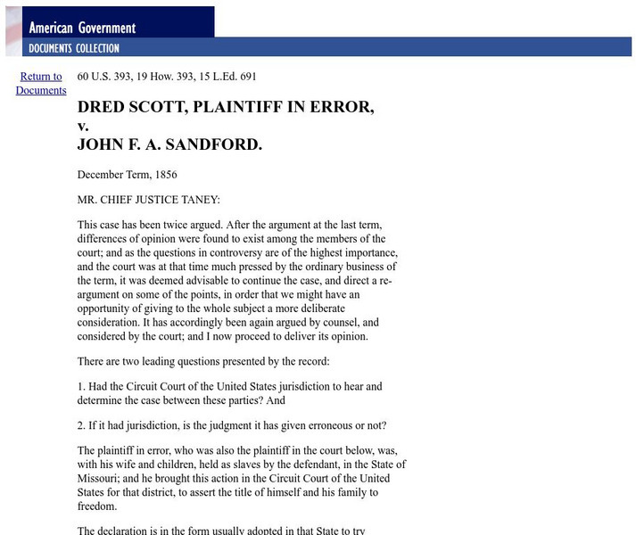 American Governemnt Documents Collection: Dred Scott vs. John f.a. Sandford