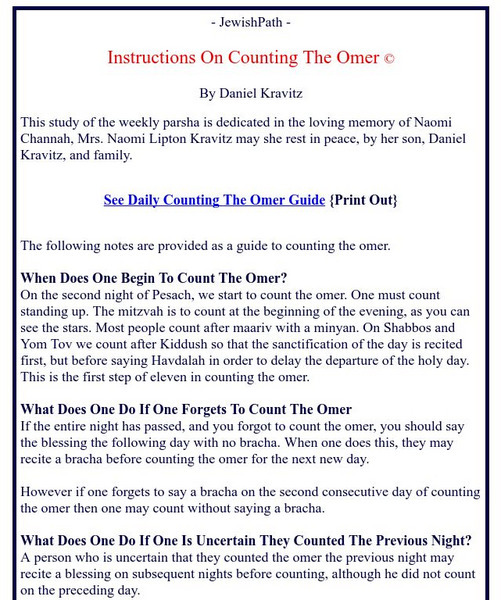 Many questions and answers about the Omer. Describes such things as when Jews should begin counting the Omer and what to do if the counting is skipped one night.