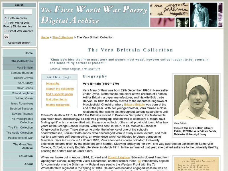 First World War Poetry Digital Archive: Vera Brittain Collection