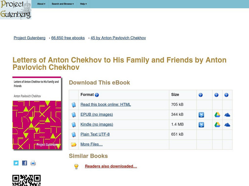 Resource provides a translation of Chekhov's (1860-1904 CE) letters and a biographical sketch. Multiple digital formats of the full text are available.