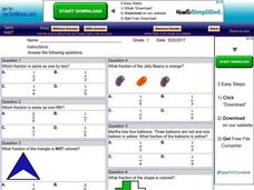 In this fractions worksheet, students solve fraction word problems containing one digit numbers. Students complete 10 multiple choice problems.