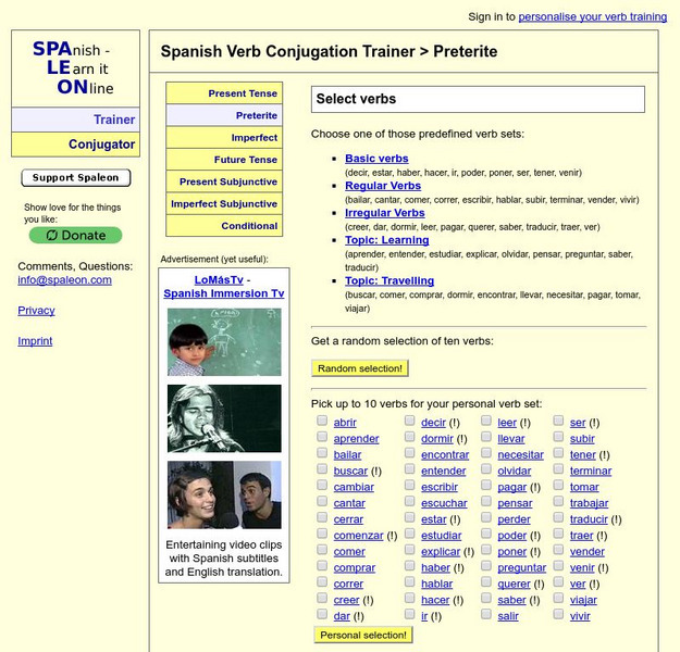 A great tool from Spanish-Learn It Online (Spaleon) to practice verb conjugations in the present tense. The student may choose the type of verb (regular, irregular, etc.) that needs to be drilled. As each answer is entered, the student...