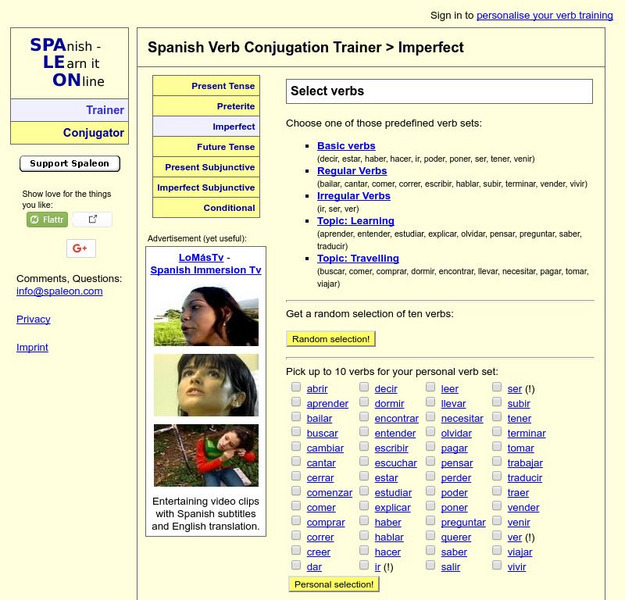 This tutorial guides the learner reader through basic Spanish conjugation verb drills.